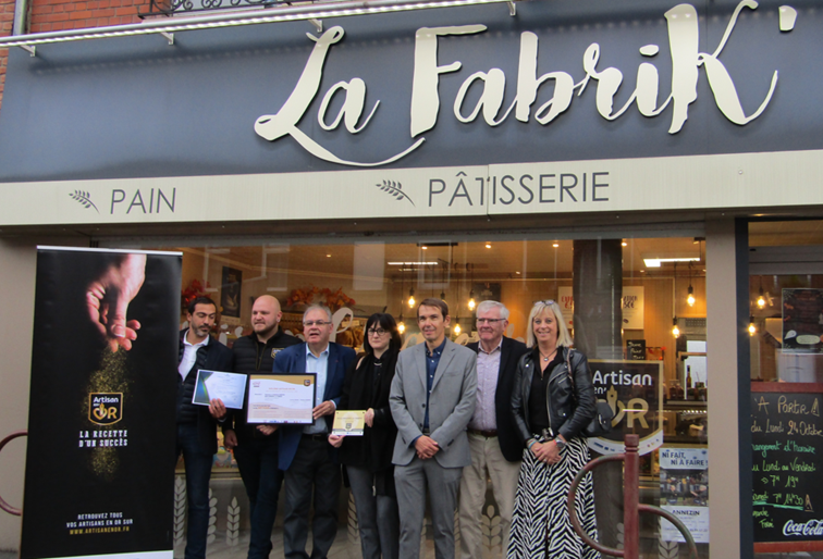 Monsieur & Madame MARTIN à la boulangerie La FabriK', 372 Avenue de la Morinie à Annezin a été distingué "Artisan en’Or 2022 Catégorie Boulangerie" en présence de Monsieur Bernard DELELIS, Vice-Président de l'Agglomération, Maire de Gonnehem, et M. Hakim ELAZOUZI, Conseiller Régional, adjoint au Maire de Béthune.