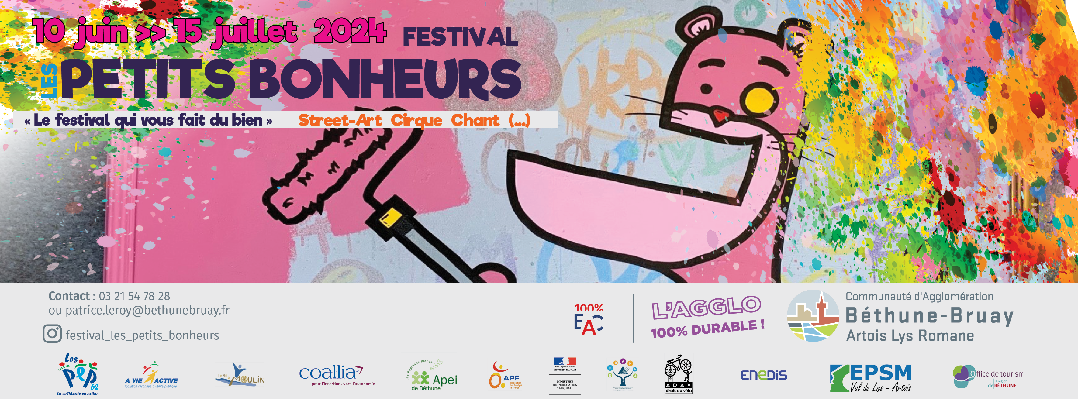 A cette occasion, une balade à vélo est organisée avec l’ADAV ce samedi 22 juin afin de visiter le parcours de street art du festival Les Petits Bonheurs sur les communes de Béthune et de Busnes.